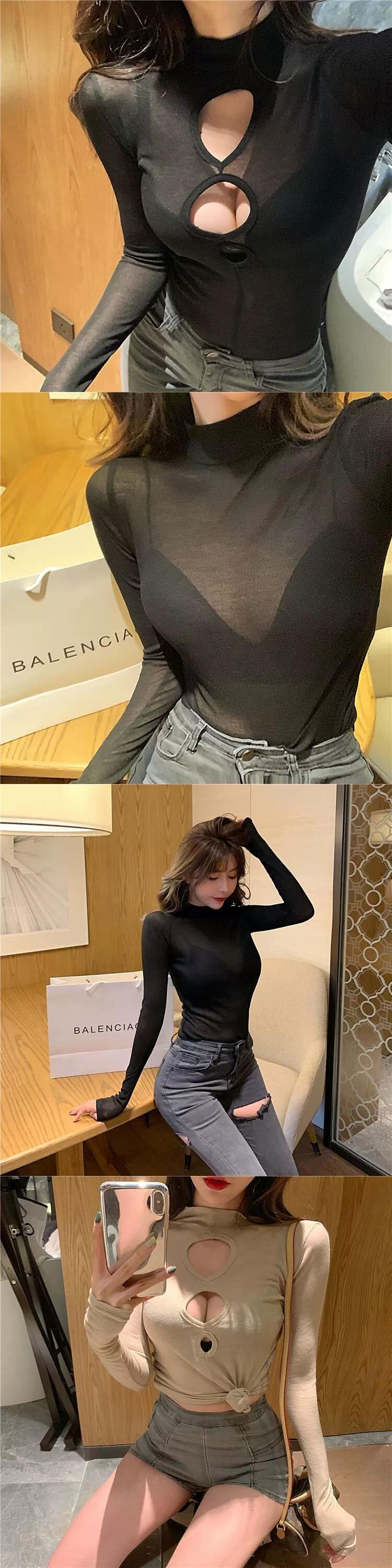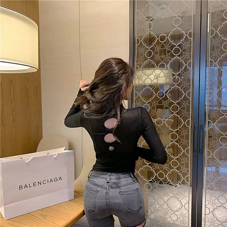【送料無料】 インターネット有名人のライブブロードキャスト服女性アンカー服pogenicセクシーな巨乳前面と背面着用中空薄い長袖トップ ロング ワンピース トップス パンツ ブラウス aw0110a38286151294