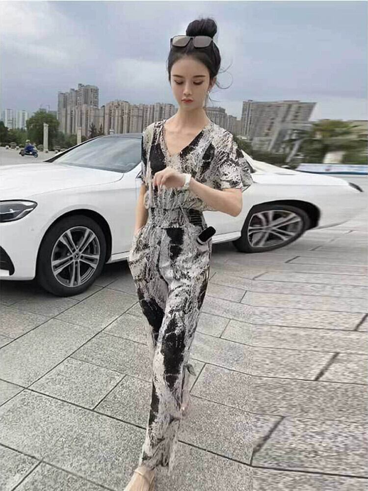 ジャンプスーツ女性 2024 シックなハイウエスト痩身ドレープパターンストレートワイドレッグワンピースジャンプスーツ夏 サマー 夏物 ワイドパンツ ワンピース スカート aw0201b64459002049 | awesomes2021