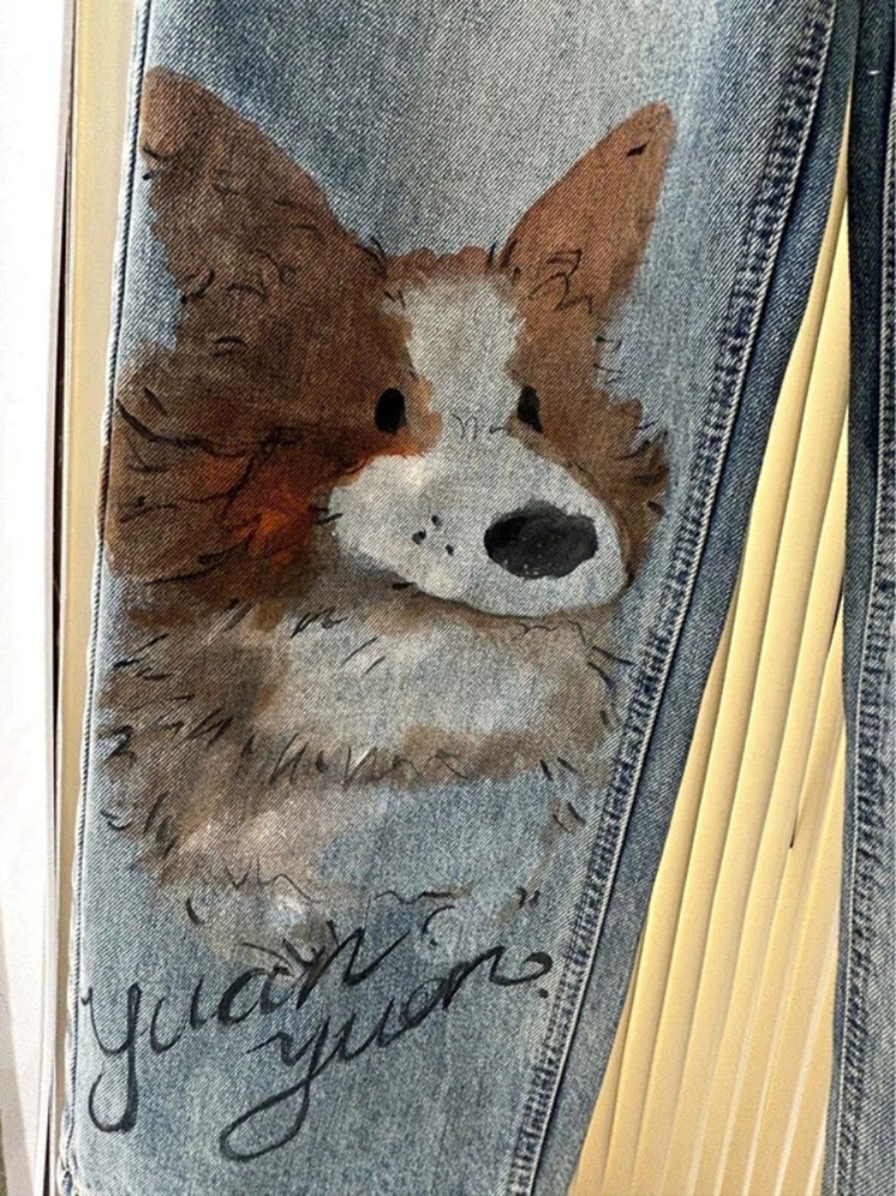 ジーンズ女性秋と冬 2023 新しいアメリカンレトロ子犬プリントハイウエスト痩身ルーズ万能ワイドレッグパンツ ハイウェスト オータム 秋物 ウィンター 冬物 ワイドパンツ トップス シャツ aw0201a24149715668 | awesomes2021