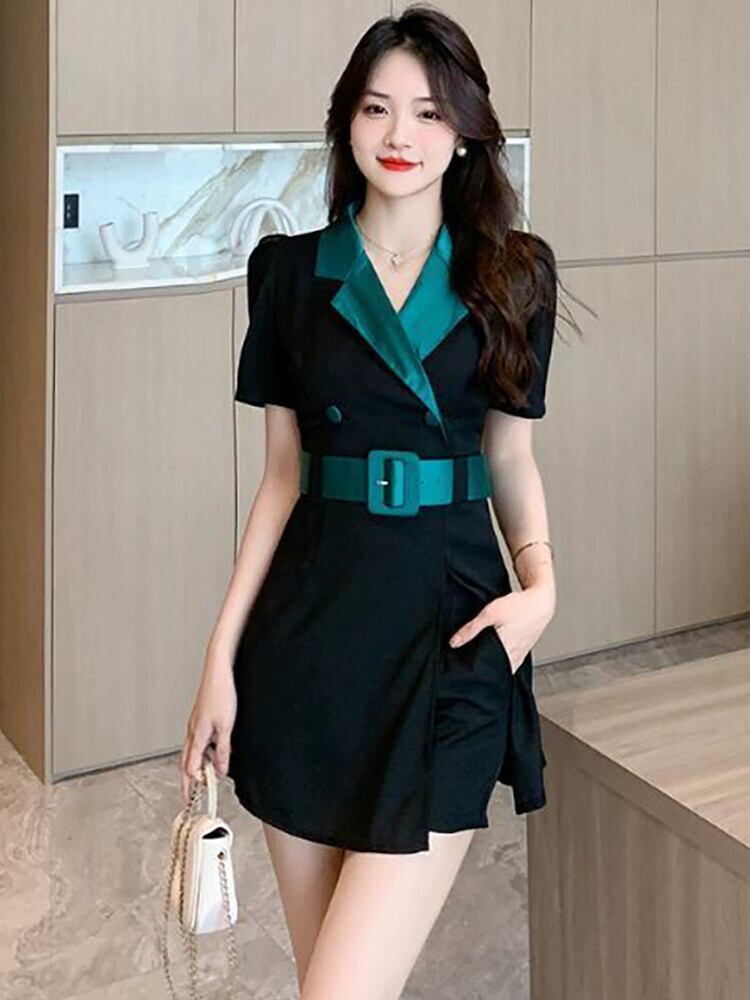 シックな夏の気質と対照的な色の高級スーツ、スリムフィット半袖スーツドレス + ショートパンツ サマー 夏物 ショーツ ブルマー ワンピース スカート aw0201b35107410777 | awesomes2021