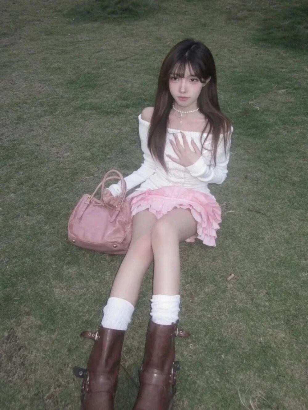 女性のヴィンテージニットセーター,裸の肩,包帯,クルーネック,カジュアル パーカー ジャージ y2k T240908141014_01