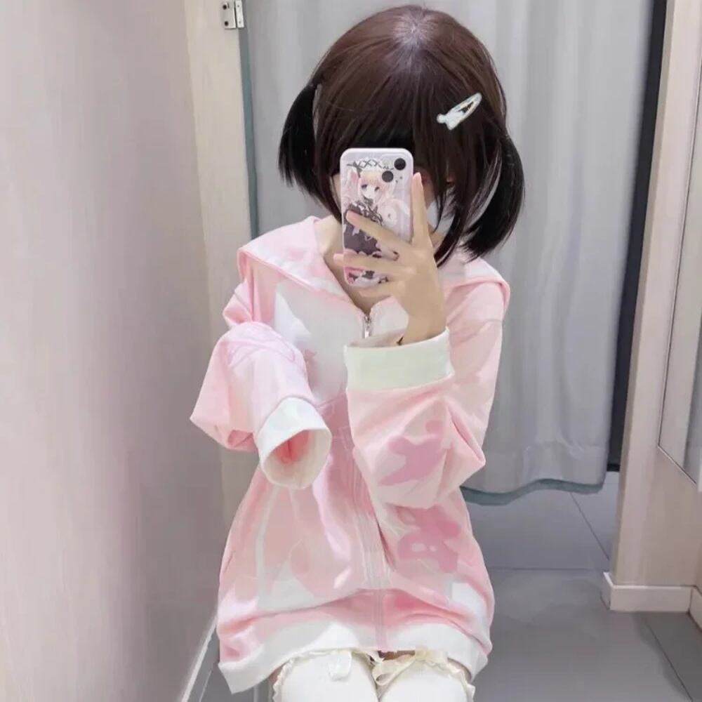 女性用セーラーネックコート,原宿カワイイ,厚手,ピンクカーディガン,y2k,e-girl,長袖,ゆったりとしたトップス,スウェットシャツ,新品 パーカー ジャージ y2k T240908141018_03